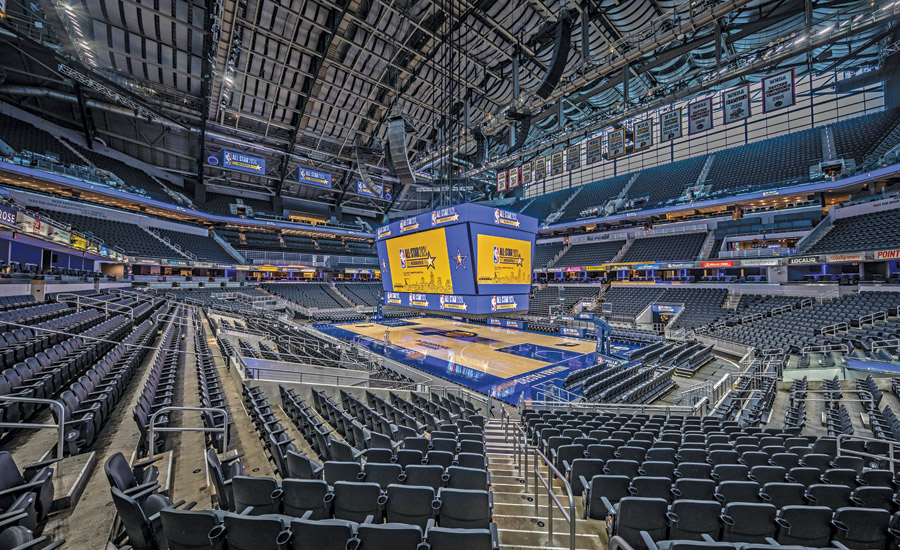 The three-phase Bankers Life Fieldhouse renovation will touch nearly every aspect of the 21-year-old downtown Indianapolis arena, but the first profound change sits ready with a complete remaking of the event level to create new premium experiences for fans of the NBA’s Indiana Pacers. The $360 million project will eventually remodel the entire venue, opening up the bowl to the concourse, giving fans new seats and culinary options, and remaking the entrance pavilion. But the focus of the recently completed first phase was on turning an arena that had one premium club into an arena with three distinct lower-level premium club experiences. “We are bringing different spaces up to alignment with current NBA standards,” says Adam Stover, senior principal for Populous, the architect on the project. “A full rework of the event level occurred. We were able to lift the practice court a level and pick up all that real estate, which was critical to the reworking of the event level.”